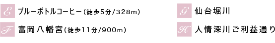 | 同友会深川クリニック | 徒歩8分(約700m) |